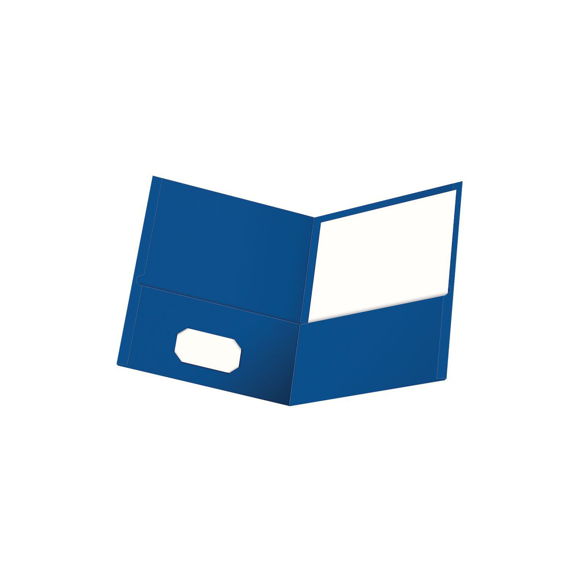 Oxford® Two Pocket Folders provide easy color coded organization for home and school, whether that's in the classroom or a virtual learning environment. The subtle textured paper on the folder reduces marks and smudges so they stay looking new longer. Each folder with pockets holds up to 100 sheets of letter size paper, plus smaller printouts won't fall out of the enclosed pockets. Great for students to organize handouts and teachers to organize student work. Schools can customize these 2 pocket folders with the die-cut business card holder for new student packets. Traditionally found on school supplies lists, pocket folders have plenty of uses: tax and small business organization, receipt storage and home project tracking. Each box includes 25 two pocket royal blue folders.