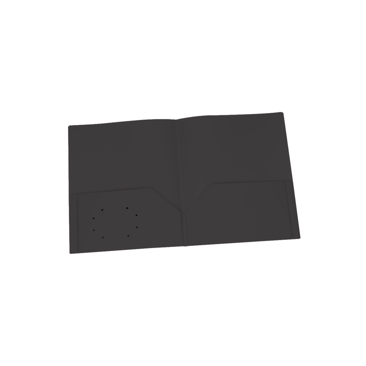 Colorful, flexible and durable for multiple uses. Lightweight poly resists wear and tear to help keep your work safe. Twin-pocket folders hold up to 50 sheets in each pocket. Interior die-cut business card holder keeps contact info close at hand. Letter size; Black; 25 per box.