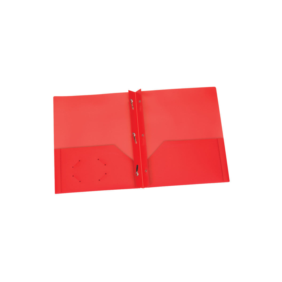 Colorful, flexible and durable for multiple uses. Lightweight poly resists wear and tear to help keep your work safe. Built-in, 2-prong fasteners hold up to 35 letter-sized 3-hole punched sheets. Twin-pocket folders hold up to 50 sheets in each pocket. Interior die-cut business card holder keeps contact info close at hand. Red; 25 per box.
