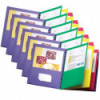 8 Individual pockets to divide project into categories for quick and easy referencing. Comb binding opens flat. Standard grade paper for durability. Pockets hold up to 25 sheets of letter size papers. 200 sheets in total. Multicolor pockets in Red, Green, Yellow, Purple. Letter size. Sold as 6 organizers.