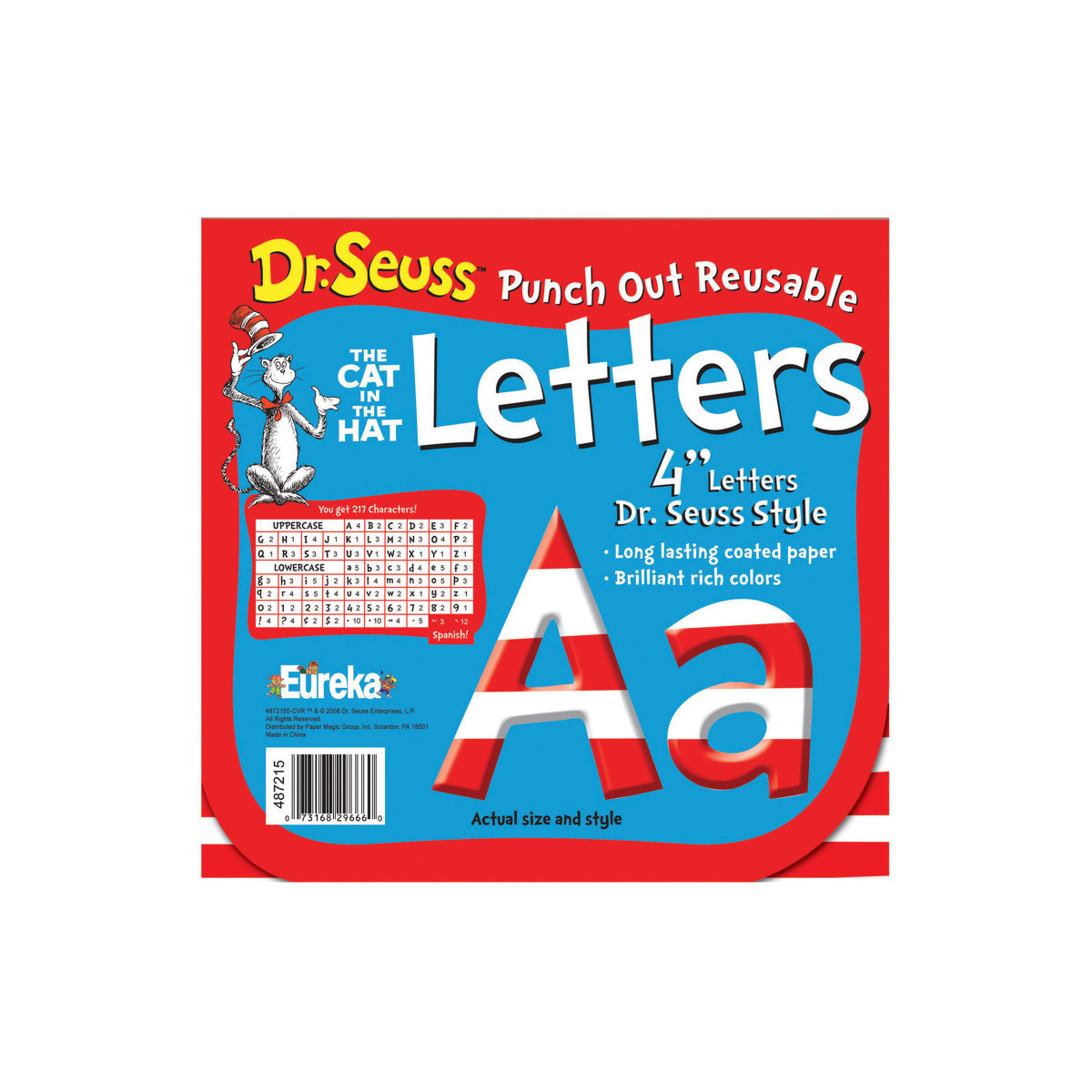 Try Eureka Reusable Punch Out Letters. Printed on coated paper with brilliant rich color, they are perfect for creating personalized projects in displays. Each letter measures at 4". Punch-out, reusable. Long lasting coated paper. Brilliant rich colors, fun and decorative. Each pack includes 217 characters.