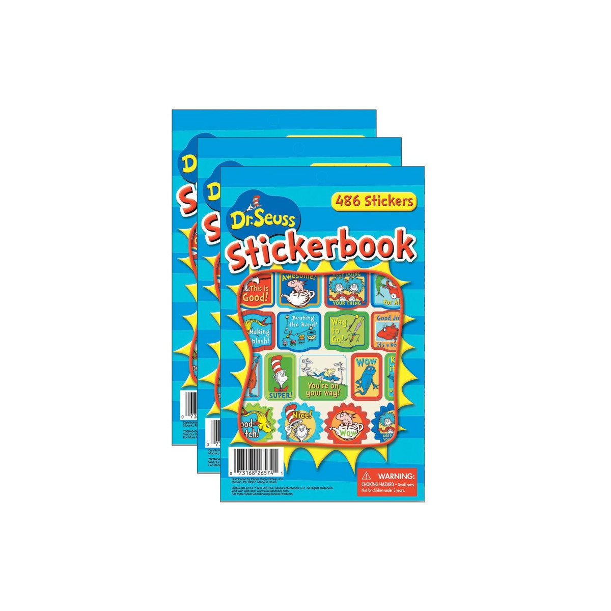 The choices are endless with Eureka Sticker Books. There are hundreds of ways to utilize this versatile format at home or in the classroom. These colorful stickers are organized by theme and conveniently packaged in an easy to use pad. Each sticker page measures 5-3/4" x 9-3/8". Each sticker book includes 486 stickers. Sold as 3 books for a total of 1,458 stickers.