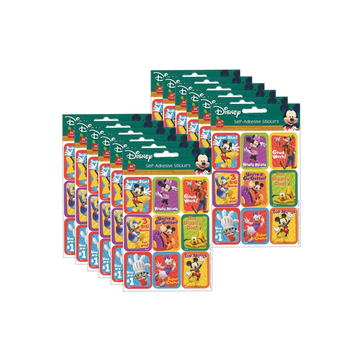 The choices are endless with Eureka stickers. There are hundreds of ways to utilize this versatile format at home or in the classroom. Stickers measure 1-5/16" x 1-3/4". Each pack includes 36 stickers in 9 designs. Sold as 12 packs for a total of 432 stickers.