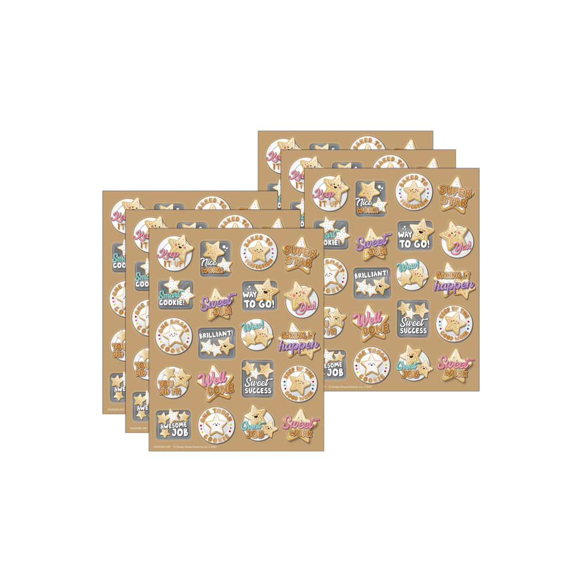 Reward star students and children for good work with stickers that are baked to perfection! These fun and colorful sugar cookie scented stickers are sure to be a favorite among students, teachers, and parents! Features fun sticker poses of super sweet star cookies, each with a long-lasting smell. Add to graded assignments, classroom crafts, letters, party invites, cards, rewards, and more! Each sticker measures about 1" in diameter. Individual sticker size varies slightly by design. Each pack includes 80 scented self-adhesive stickers. Sold as 6 packs for a total of 480 stickers.