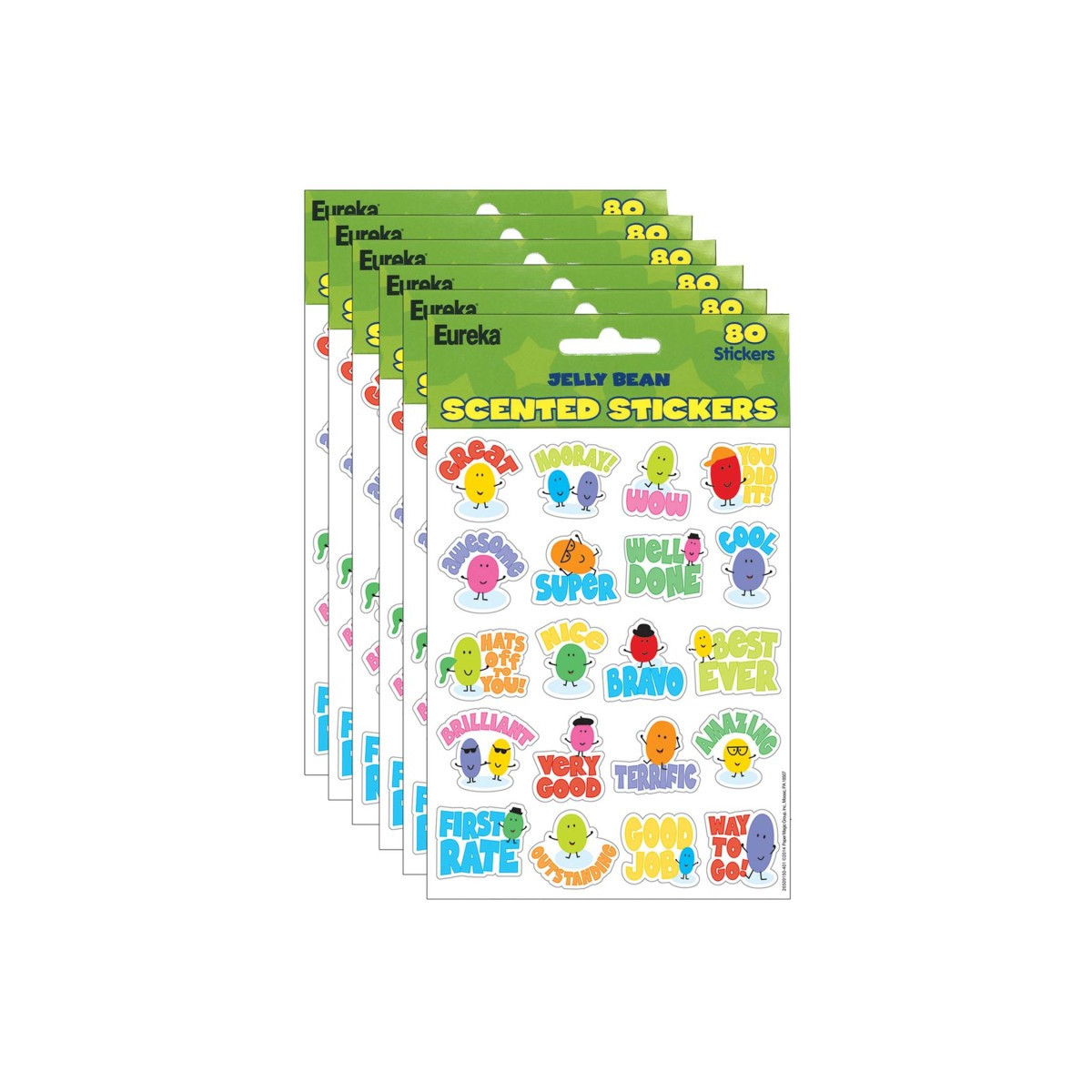 The choices are endless with Eureka stickers. There are hundreds of ways to utilize this versatile format at home or in the classroom. Each sticker measures about 1" in diameter. Each package contains 80 self-adhesive scented stickers per package. Sold as 6 packs for a total of 480 stickers.