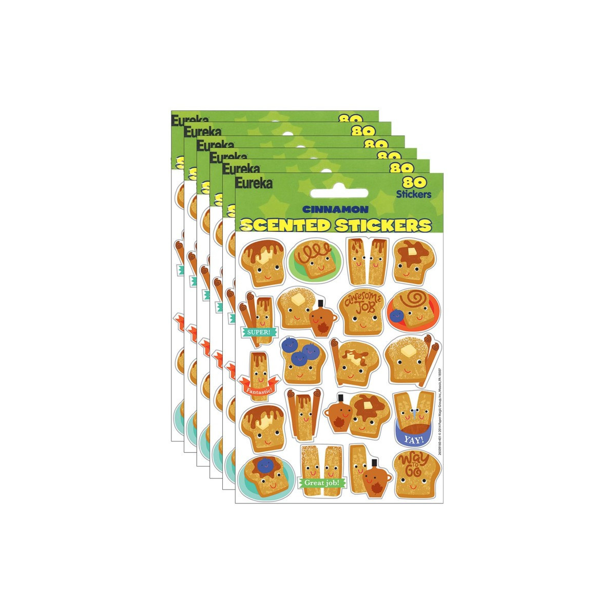 The choices are endless with Eureka stickers. There are hundreds of ways to utilize this versatile format at home or in the classroom. Each sticker measures about 1" in diameter. Each package contains 80 self-adhesive scented stickers per package. Sold as 6 packs for a total of 480 stickers.