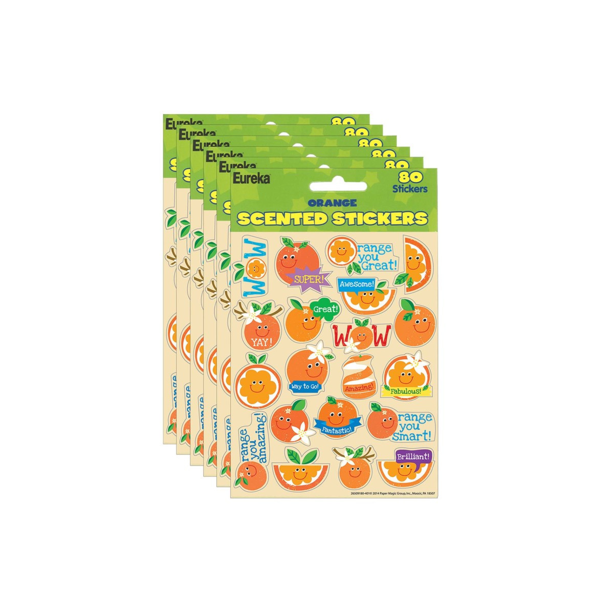 The choices are endless with Eureka stickers. There are hundreds of ways to utilize this versatile format at home or in the classroom. Each sticker measures about 1" in diameter. Each package contains 80 self-adhesive scented stickers per package. Sold as 6 packs for a total of 480 stickers.