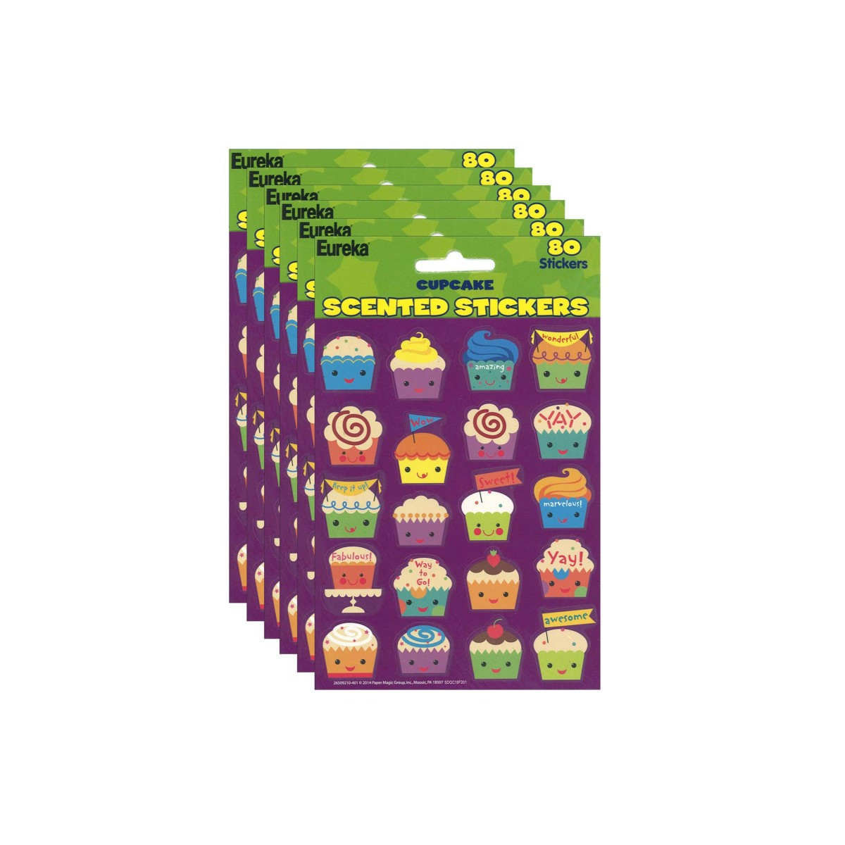 The choices are endless with Eureka stickers. There are hundreds of ways to utilize this versatile format at home or in the classroom. Each sticker measures about 1" in diameter. Each package contains 80 self-adhesive scented stickers. Sold as 6 packs for a total of 480 stickers.