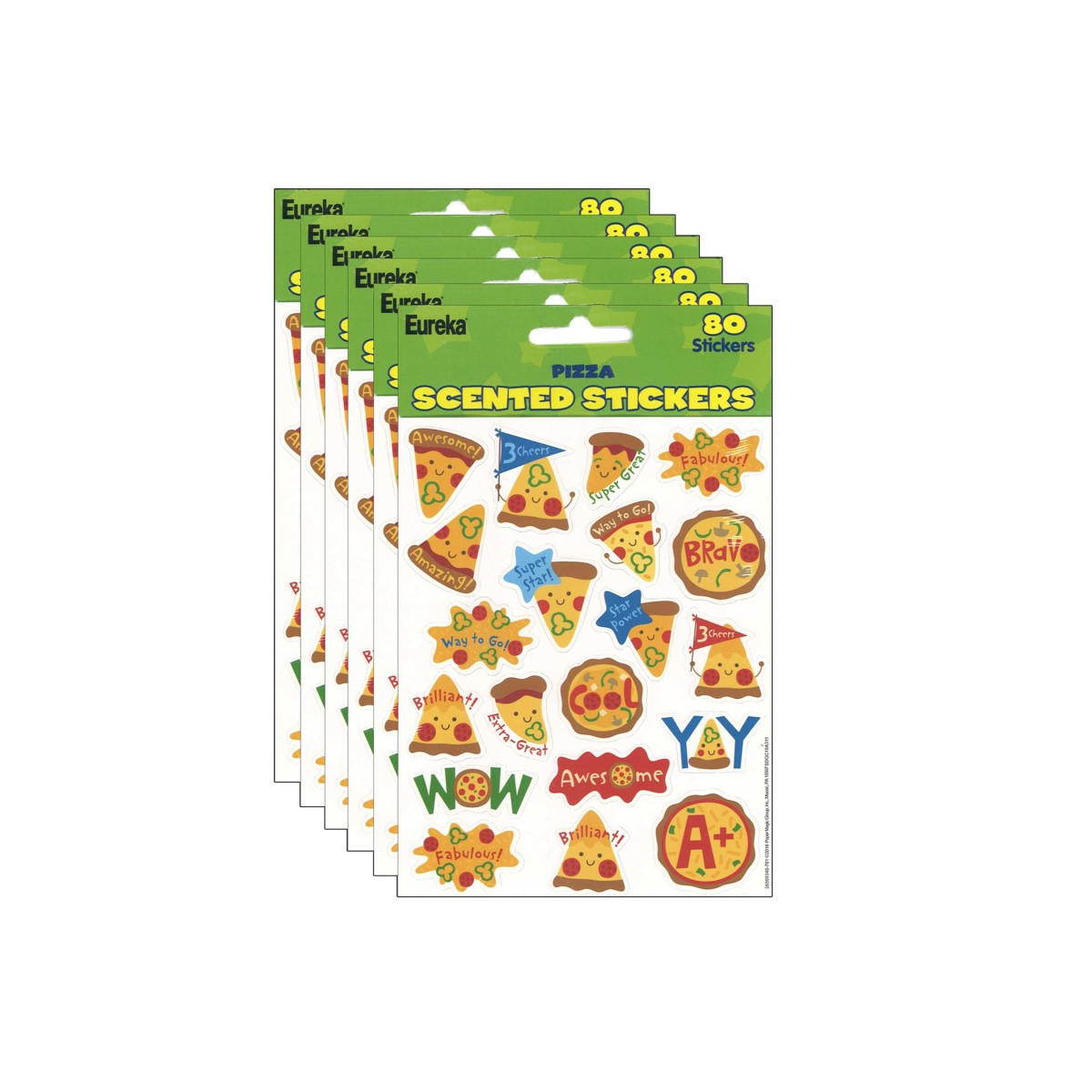 Fun and colorful Eureka Scented Stickers with a long-lasting smell will add an extra touch to graded assignments, classroom crafts and rewards! Individual sticker size varies slightly by design. Each pack includes 80 scented self-adhesive stickers. Sold as 6 packs for a total of 480 stickers.