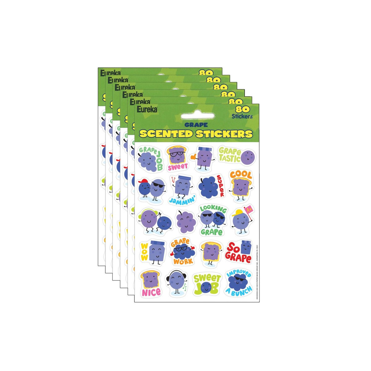 Fun and colorful Eureka Scented Stickers with a long-lasting smell will add an extra touch to graded assignments, classroom crafts and rewards! Individual sticker size varies slightly by design. Each pack includes 80 scented self-adhesive stickers. Sold as 6 packs for a total of 480 stickers.