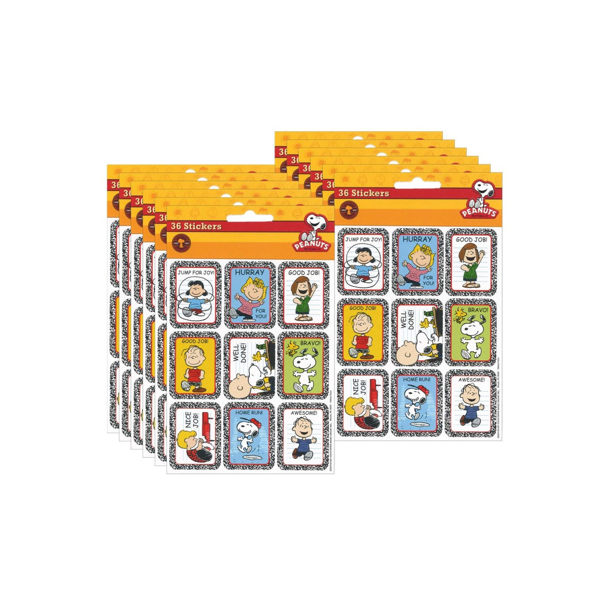 36 stickers per pack in 9 designs, sold as 12 packs, 432 stickers total