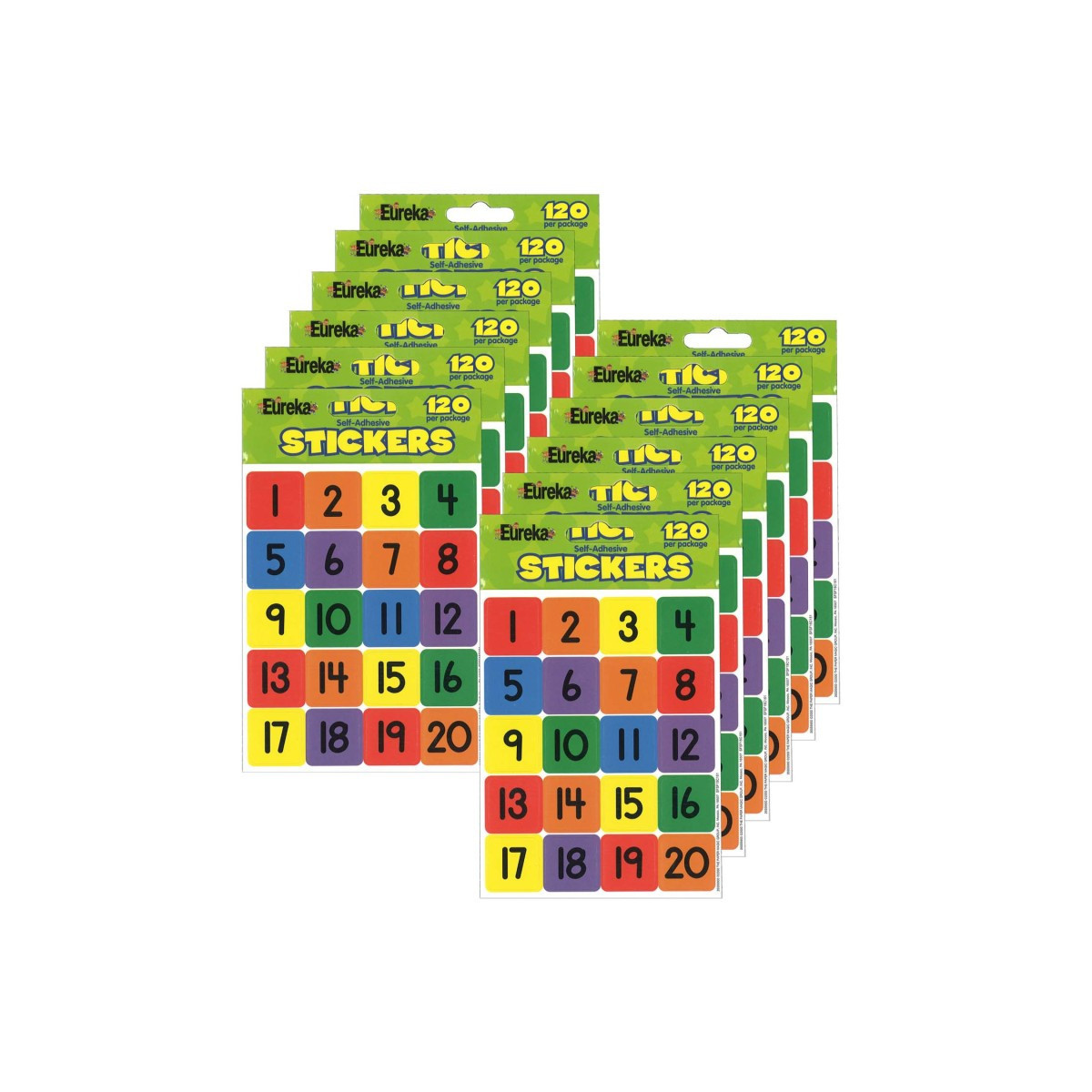 The choices are endless with Eureka stickers. There are hundreds of ways to utilize this versatile format at home or in the classroom. Each sticker measures 1" x 1". Each pack contains 120 stickers. Sold as 12 packs for a total of 1440 stickers.