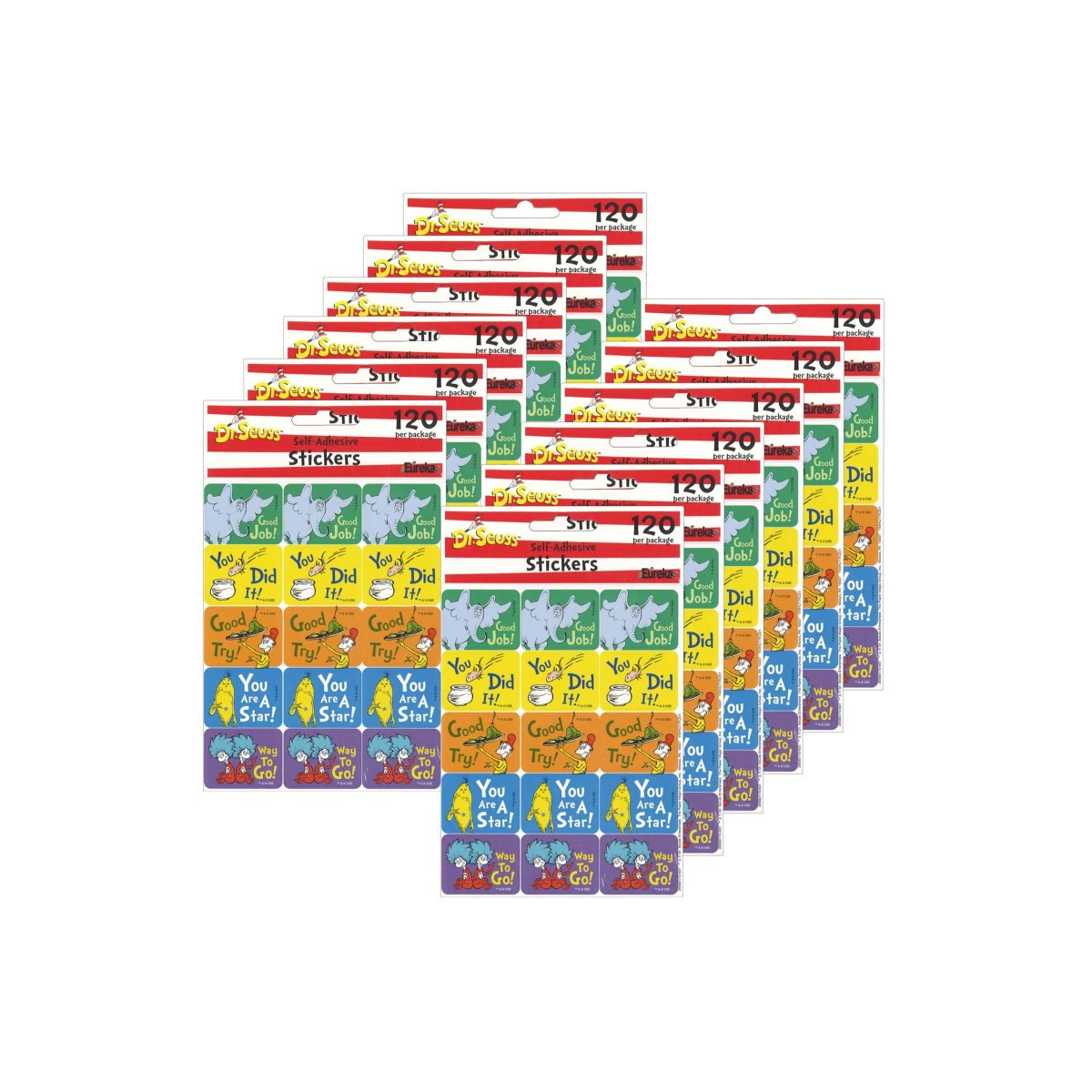 The choices are endless with Eureka stickers. There are hundreds of ways to utilize this versatile format at home or in the classroom. Each sticker measures 1 3/8" x 1". Each pack includes 120 self-adhesive stickers (24 each of 5 designs). Sold as 12 packs for a total of 1440 stickers.