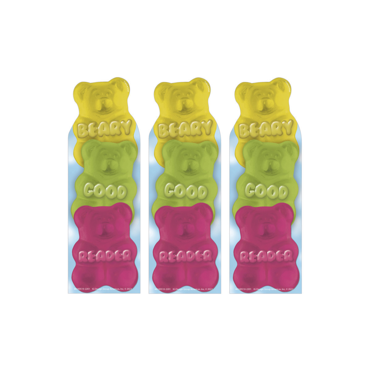 Students and children will be beary good readers in no time with the help of fun and colorful Eureka Scented Bookmarks! With a long-lasting smell and fun designs, bookmarks help make reading even more fun! These scented bookmarks are a great way to encourage young bibliophiles of all ages to stay motivated, exceed reading goals, achieve personal goals, succeed in class, or encourage a positive attitude towards reading. Each bookmark measures 2" x 6". For best results, scratch scented area of bookmark to release scent. Each pack includes 24 gummy bear scented bookmarks. Sold as 3 packs for a total of 72 bookmarks.