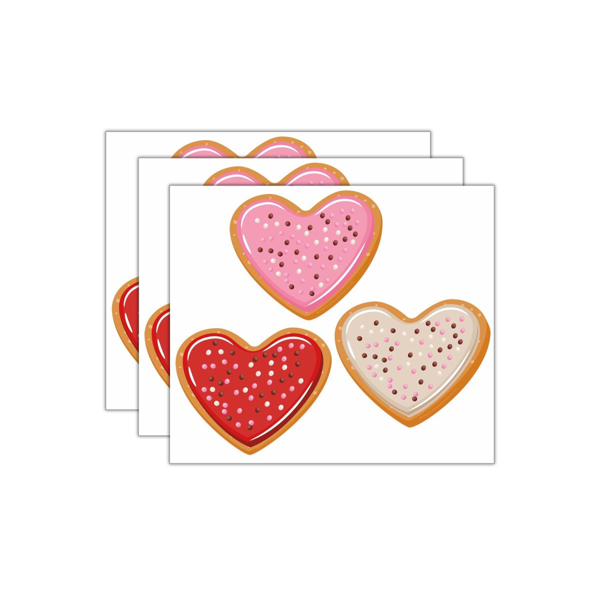 What's Included – Each pack includes 36 pieces (12 each of 3 designs: pink, red, and cream cookies), sold as 3 packs for a total of 108 cut-outs.