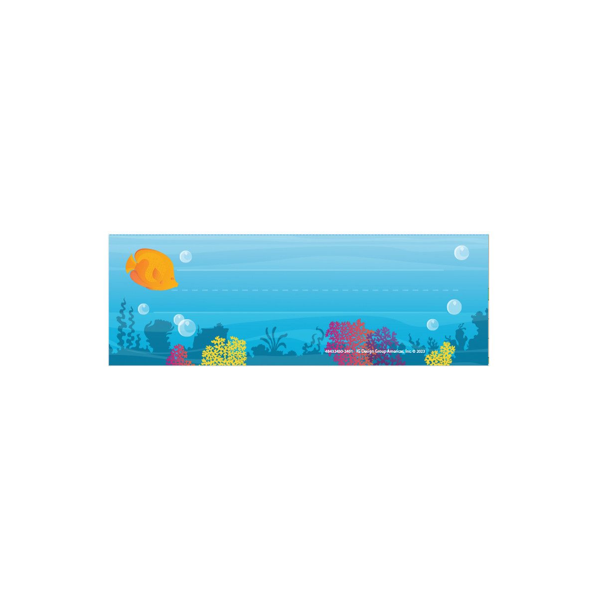 Showcase more than your students name! Eureka Tented Name Plates provide a helpful visual reference with plenty of space for first and last names that can be seen from both sides. Simply write the child's name, fold nameplate at fold line, and place on desk. Individual name plate measures 9-5/8" x 6-1/2" and printed on heavy weight cardstock. Each pack includes 36 name plates. Make a splash! Make your classroom turtley awesome with the Seas the Day collection. Cool ocean vibes, motivational phrases, marine life imagery, and vibrant colors make this theme easy to age up or down.