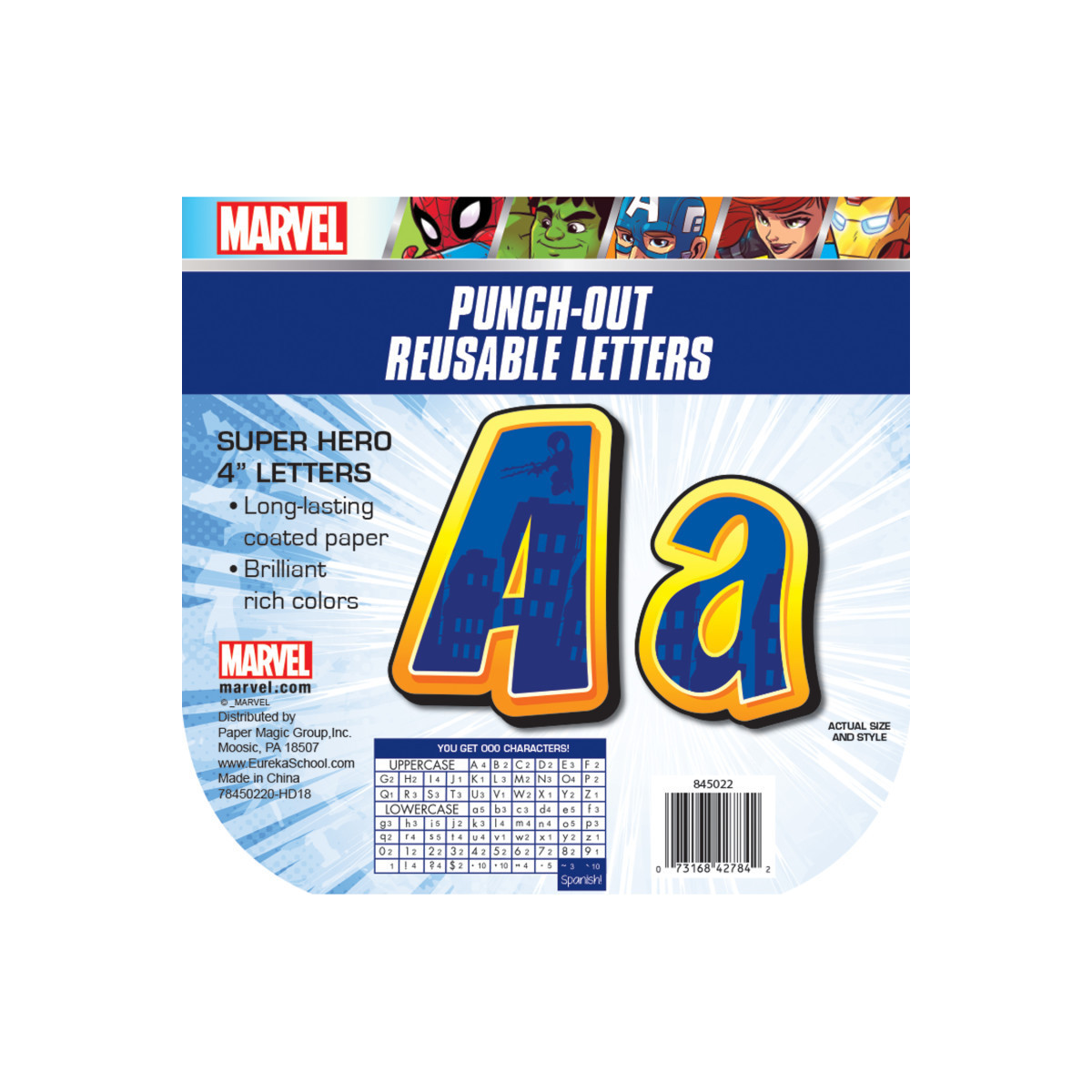 An easy way to create personalized classroom messages on bulletin boards, windows, chalkboards and hallways. Each punch-out, reusable letter measures 4-1/8", printed on long-lasting coated paper. Each pack includes 223 characters.
