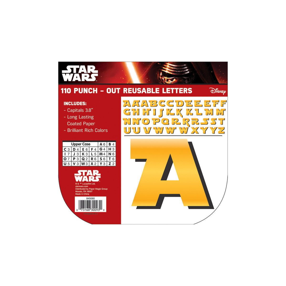 Eureka School Star Wars™ reusable punch out letters, commonly referred to as bulletin board letters, help create colorful, informative bulletin board designs when paired with bulletin board sets, bulletin board borders and more. Each punch-out, reusable letter measures 4", printed on long-lasting coated paper. Contains 110 characters.