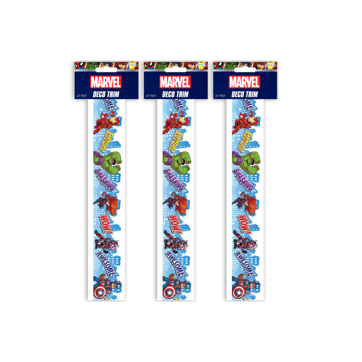 Use Eureka School Extra Wide Deco Trim® to add a finishing border to your displays, windows, doorways or chalkboards. Vibrant colors plus a variety of styles and themes can add creativity to displays, windows, chalkboards and more. Each package contains 12 strips (each 37" long x 3.25" wide) for a total of 37 feet. Sold as 3 packs for 36 strips (111 feet) total.