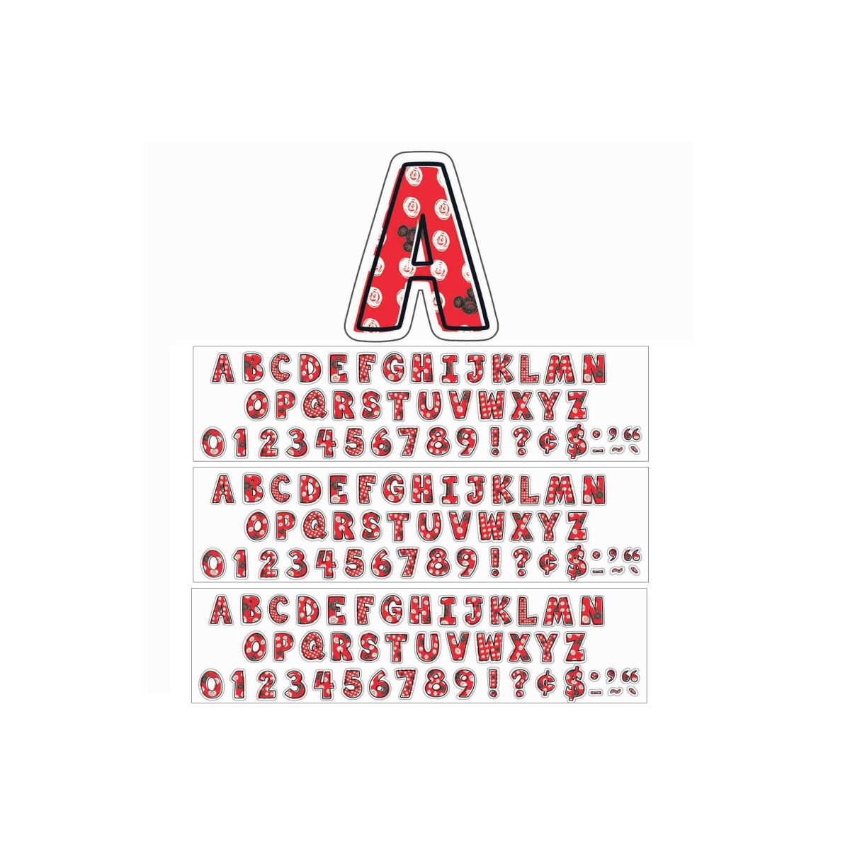 Try Eureka Reusable Punch Out Letters. Printed on coated paper with brilliant rich color, they are perfect for creating personalized projects in displays. Each punch-out, reusable letter measures 4" H, printed on long-lasting coated paper. Each pack contains 177 characters. Sold as 3 packs for 531 characters.