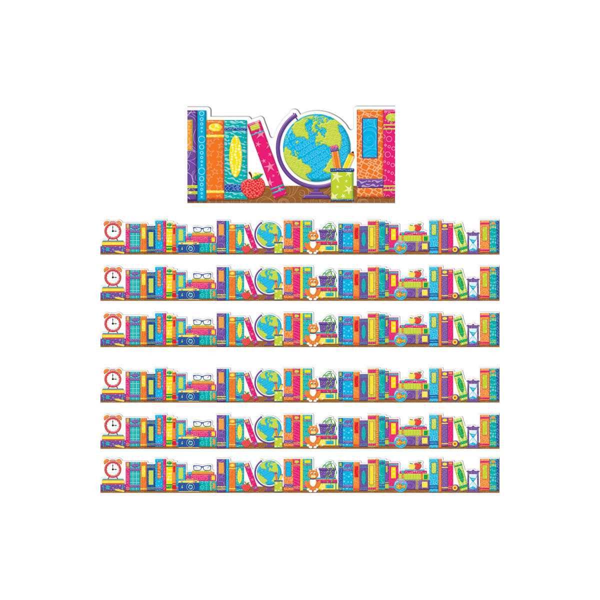 Use Eureka School Extra Wide Deco Trim® to add a finishing border to your displays, windows, doorways or chalkboards. Vibrant colors plus a variety of styles and themes can add creativity to displays, windows, chalkboards and more. Coordinates with the Color My World Collection. Each pack includes 12 strips (each measuring 3.25" x 37") for a total of 37' of trim per pack. Sold as 6 packs for a total of 72 strips (222 feet).