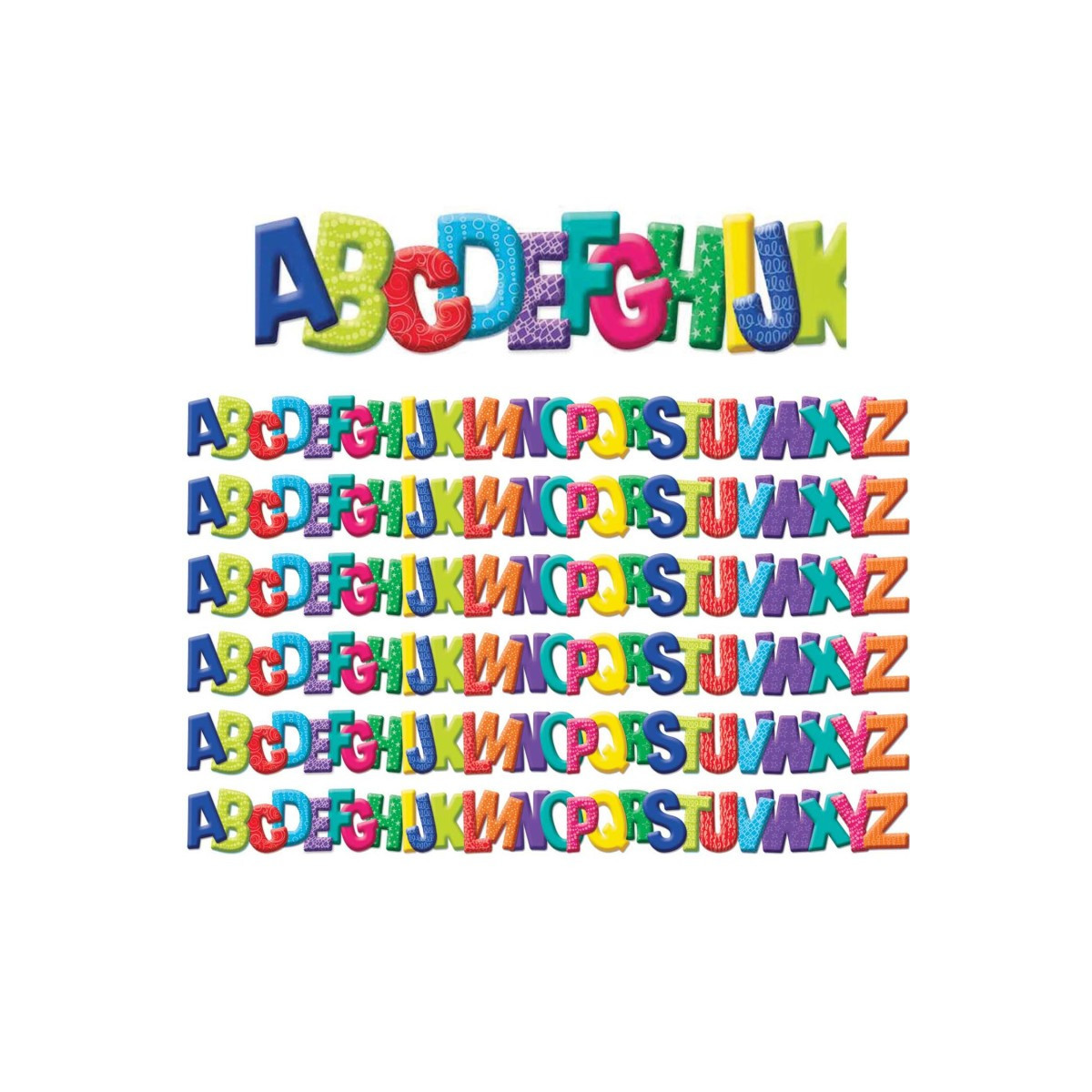 Use Extra Wide Die-Cut Deco Trim® as a finishing touch on the edges of your bulletin boards, windows, doorways, chalkboards and dry erase boards. This colorful trim matches well with any classroom theme. The vibrant colors and designs will add creativity to all of your classroom displays. 3.25" wide, each package contains 12 strips (each 37" long) for a total of 37 feet. Sold as 6 packs, 222' of border total.