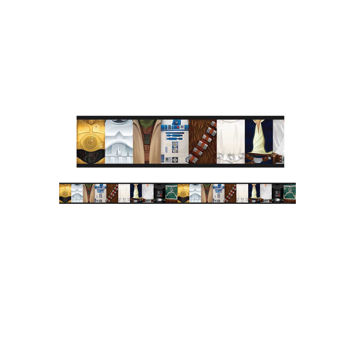 Eureka School Star Wars ™ extra wide deco trim adds a finishing border to your displays, windows, doorways or chalkboards. Vibrant colors and themes can add creativity anywhere you choose. 3.25" wide, each package contains 12 strips (each 37" long) for a total of 37 feet