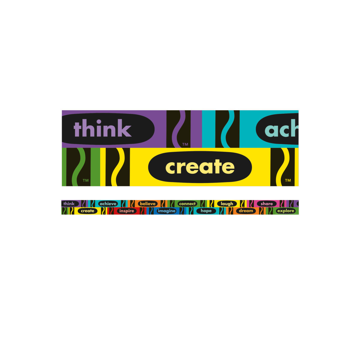 Use Eureka School Deco Trim® to add a finishing border to your displays, windows, doorways or chalkboards. Vibrant colors plus a variety of styles and themes can add creativity to displays, windows, chalkboards and more. Each pack includes 12 strips, each measuring 2-1/4" x 37" for a total of 37 feet!