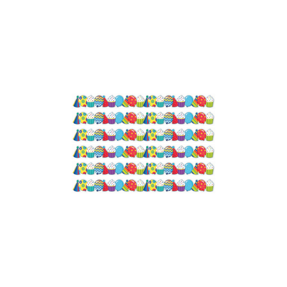 Use Eureka School Extra Wide Deco Trim® to add a finishing border to your displays, windows, doorways or chalkboards. Vibrant colors plus a variety of styles and themes can add creativity to displays, windows, chalkboards and more. Each pack includes 12 strips, each measure 3-1/4" x 37" for a total of 37 feet! Sold as 6 packs for a total of 72 strips (222 feet).