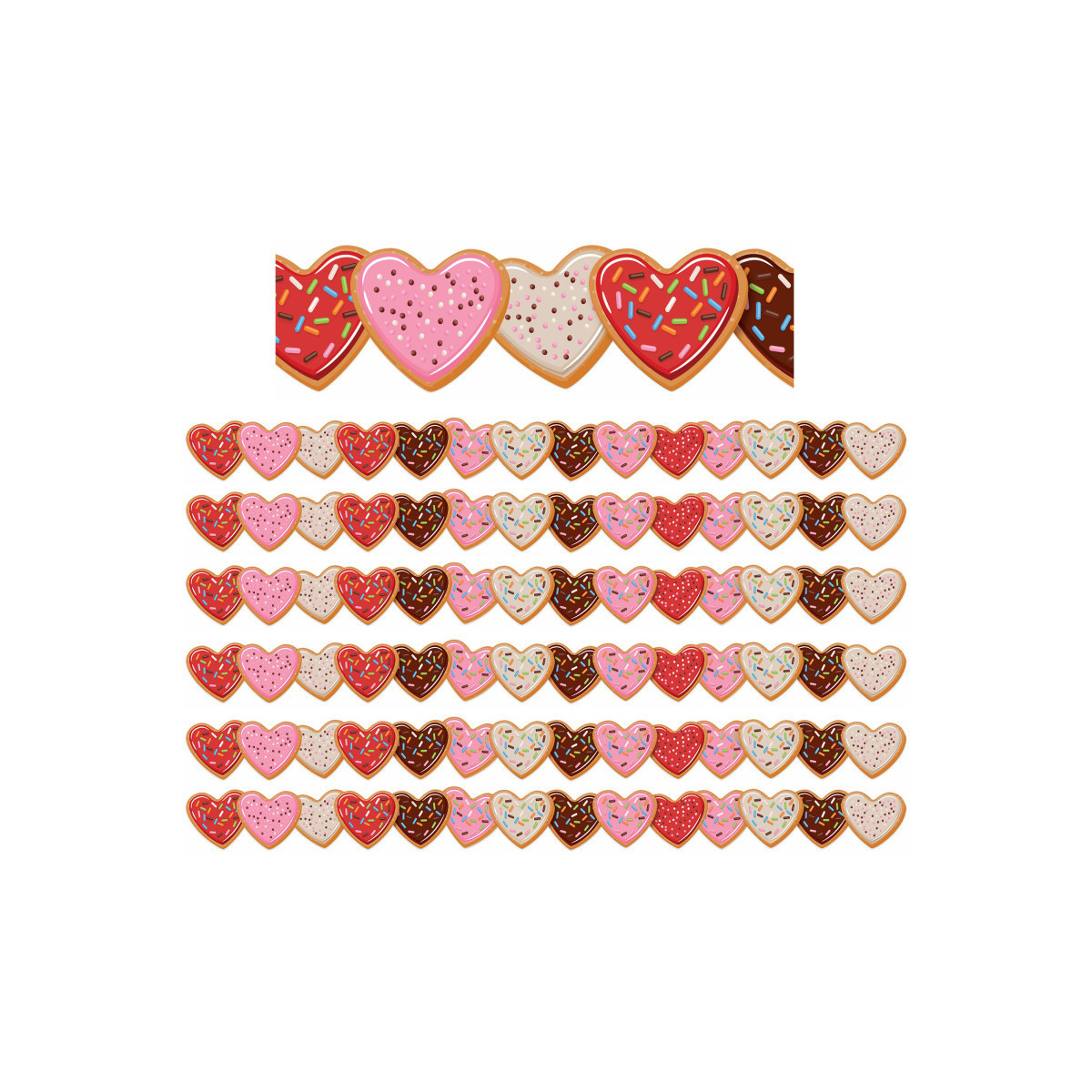 Use Eureka School Extra Wide Deco Trim® to add a finishing border to your displays, windows, doorways or chalkboards. Vibrant colors plus a variety of styles and themes can add creativity to displays, windows, chalkboards and more. Extra Wide Deco Trim® is printed on heavy weight cardstock and is reusable. Basic designs work for seasons and holidays and can be used in a variety of settings! Valentine's Day themed. Each pack includes 12 strips (each measuring 3-1/4" x 37") for a total of 37 feet. Sold as 6 packs for a total of 72 strips (324 feet).