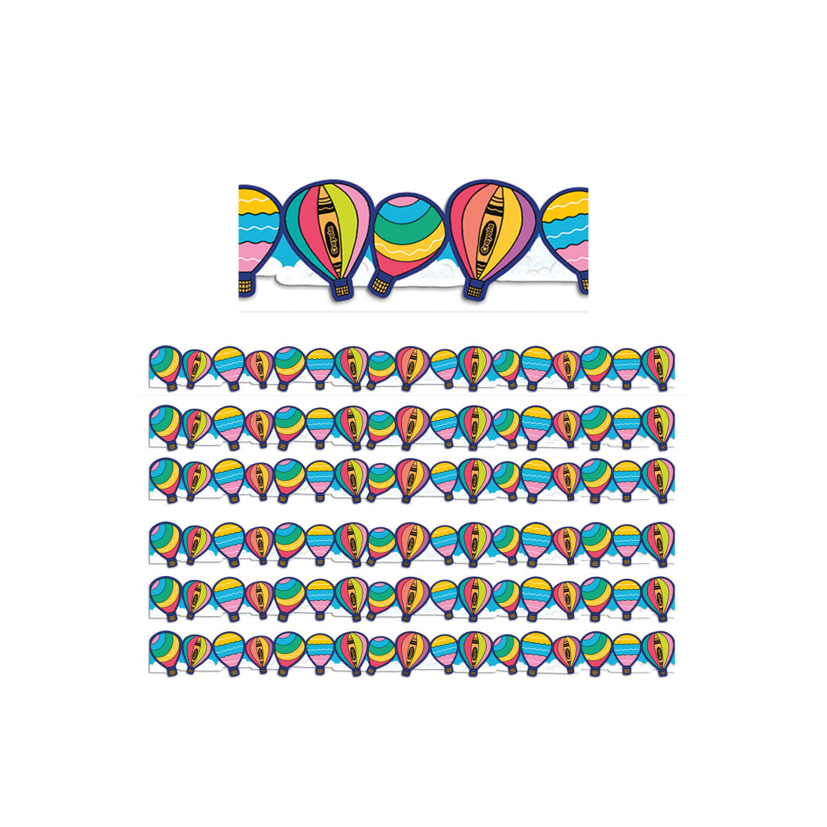 Use Eureka School Extra Wide Deco Trim® to add a finishing border to your displays, windows, doorways or chalkboards. Vibrant colors plus a variety of styles and themes can add creativity to displays, windows, chalkboards and more. Extra Wide Deco Trim® is printed on heavy weight cardstock and is reusable. Help amplify your students' learning environment with the easily recognizable look of Crayola®. Each pack includes 12 strips (each measuring 3-1/4" x 37") for a total of 37 feet. Sold as 6 packs for a total of 72 strips (324 feet).