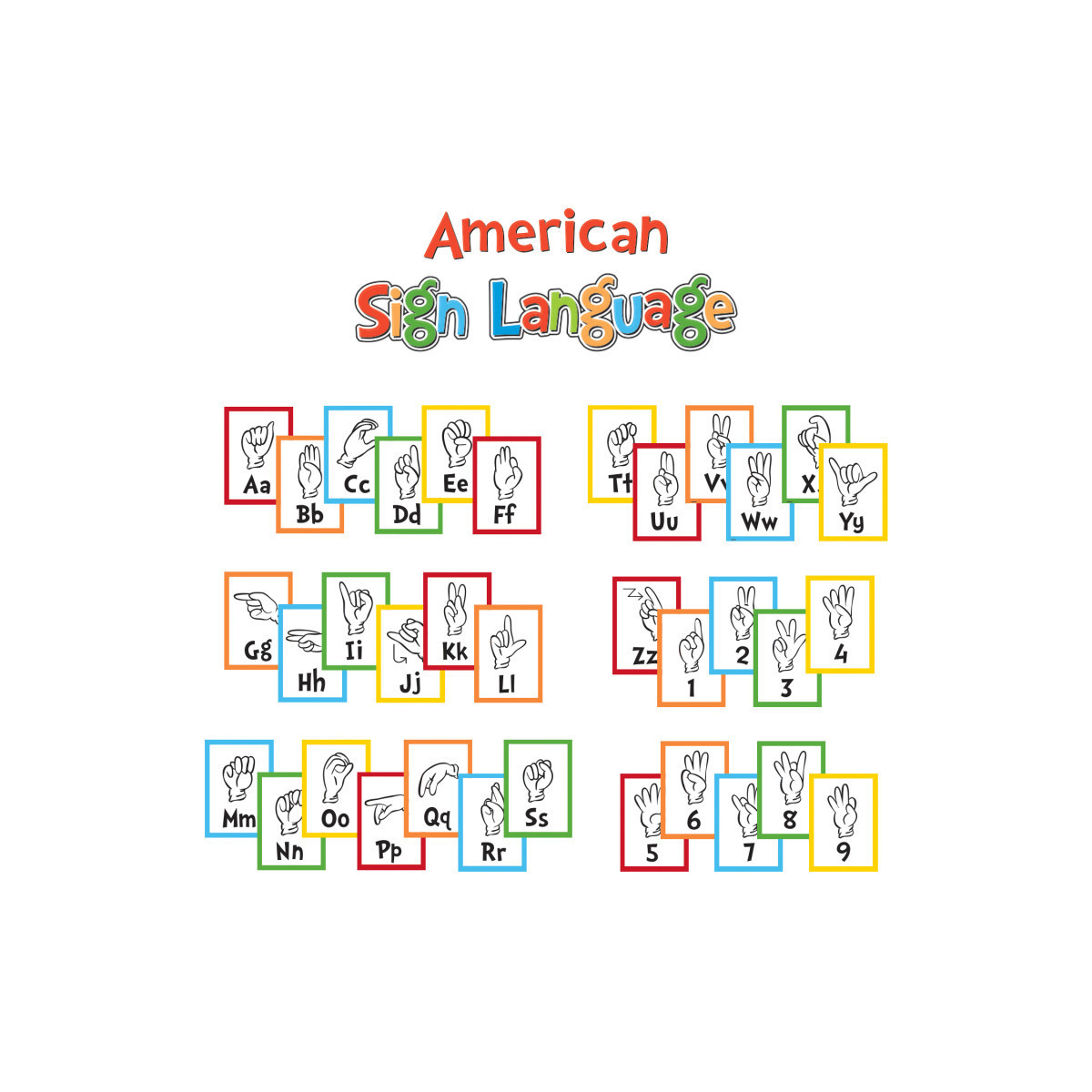 Help teach your students basic sign language with Eureka's Dr. Seuss™ Sign Language Alphabet Mini Bulletin Board Set! Each 39 Piece set includes 1 American Sign Language Header, 26 Letters, 0-9 Numbers. Packaged as (8) 6" x 21" panels in a polybag with header. Coordinates with Eureka's many Dr. Seuss™ Collections!