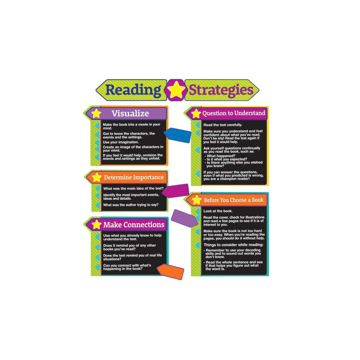 Give your students helpful reading tips with a 20 piece Eureka Bulletin Board Set. Full color illustrations printed on heavy weight card stock. Easy to punch out design. Reusable. Packaged as 5 - 17" x 24" panels. Each 20-piece set includes 5 panels with: 8 Reading Strategies Die-Cut Signs, 3 Piece Header, 8 Markers, and 1 Teacher's Resource Guide.
