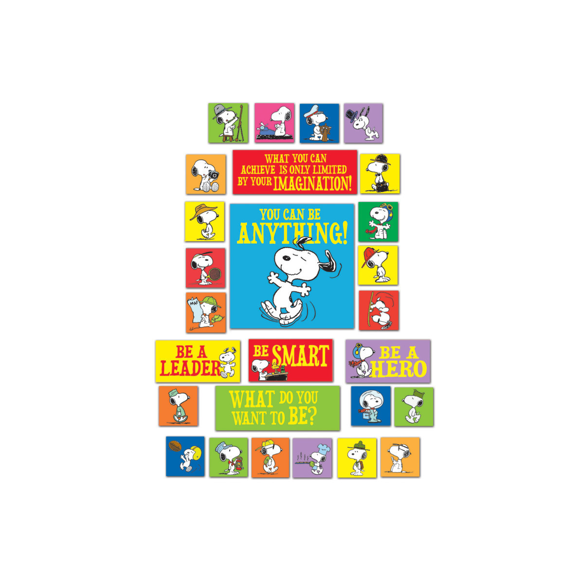 Eureka Bulletin Board Sets are sure to bring any room to life. With the brightest colors, individual designs and variety of styles, the choices are endless. Includes 1 Mini poster, 27 Snoopy characters, and 5 signs.