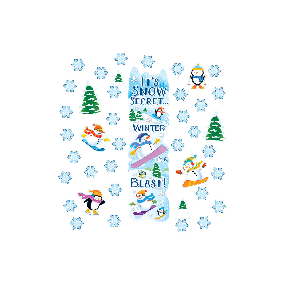 33 Piece set includes 24 Paper Cut Outs, 8 Assorted Decorative Pieces, and 1 Die Cut 45" Banner With Foil.