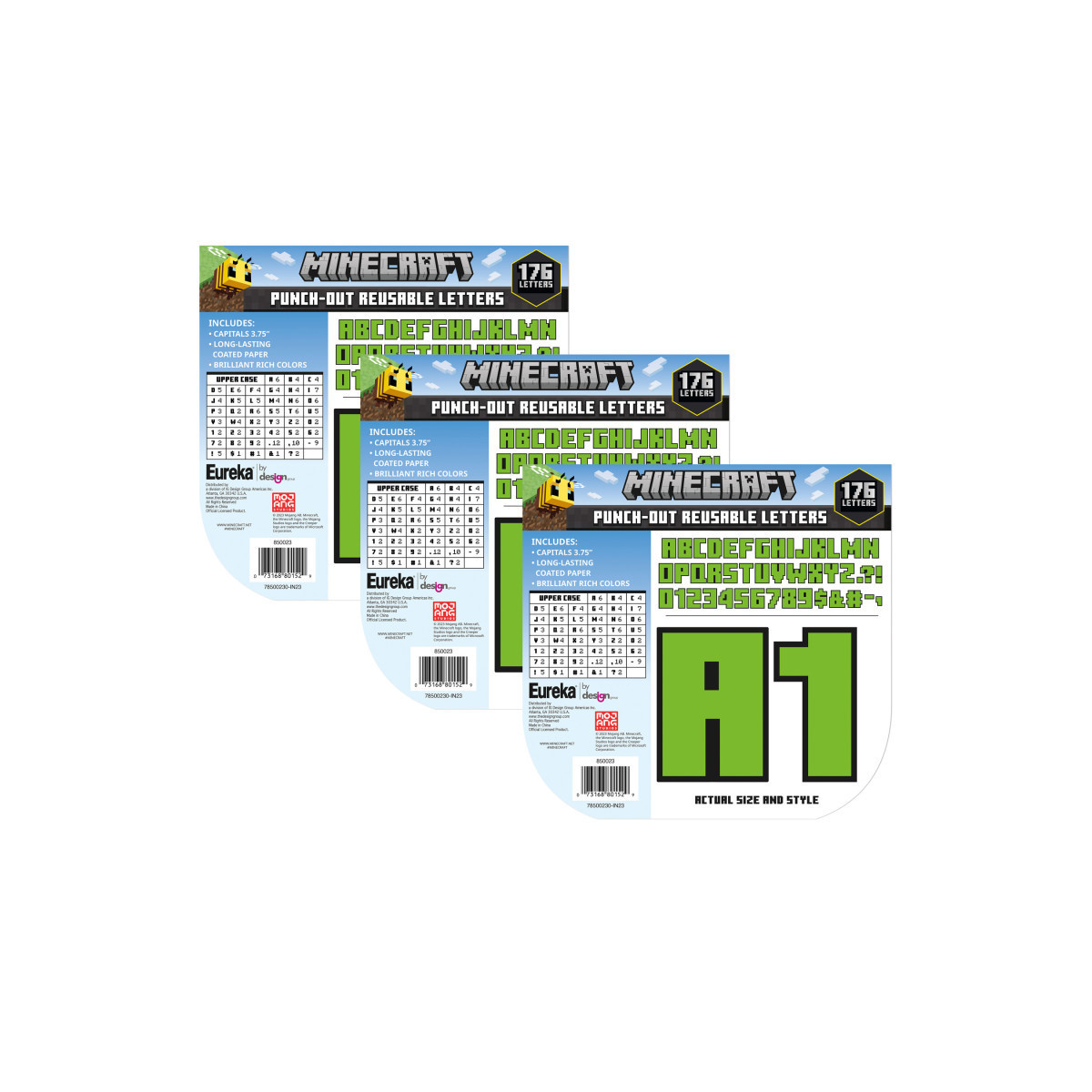 What's Included - Sold as 3 packs for a total of 528 pieces, each individual pack includes 176 Minecraft style letters, including uppercase letters, numerals, punctuation marks, and symbols. Individual letters measure 3.75".