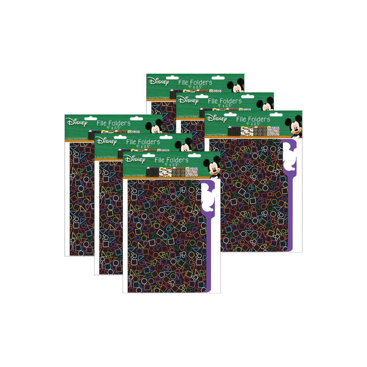 Geo Mickey File Folders file folders offer unique and creative solutions for classroom organization. Each file folder measures approximately 9" x 11.5". Each pack include 4 file folders (1 each of 4 different designs). Sold as 6 packs for a total of 24 file folders.