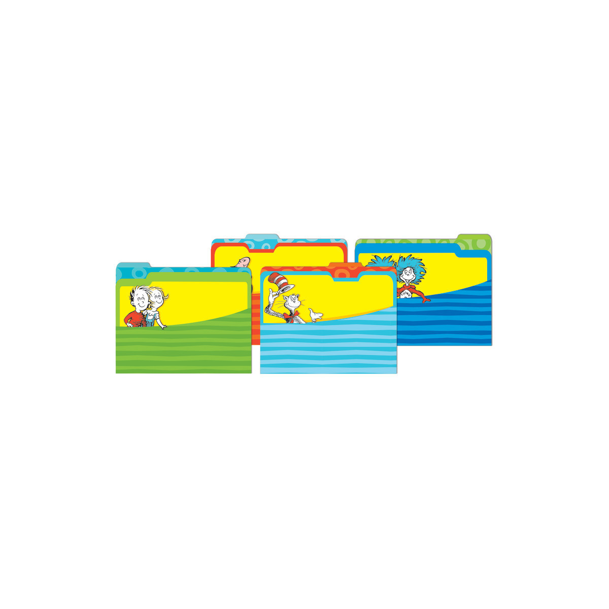 Dr. Seuss™ Classic File Folders offer unique and creative solutions for classroom organization. Each file folder measures approximately 9" x 11.5". Each pack includes 4 file folders (1 each of 4 different designs).