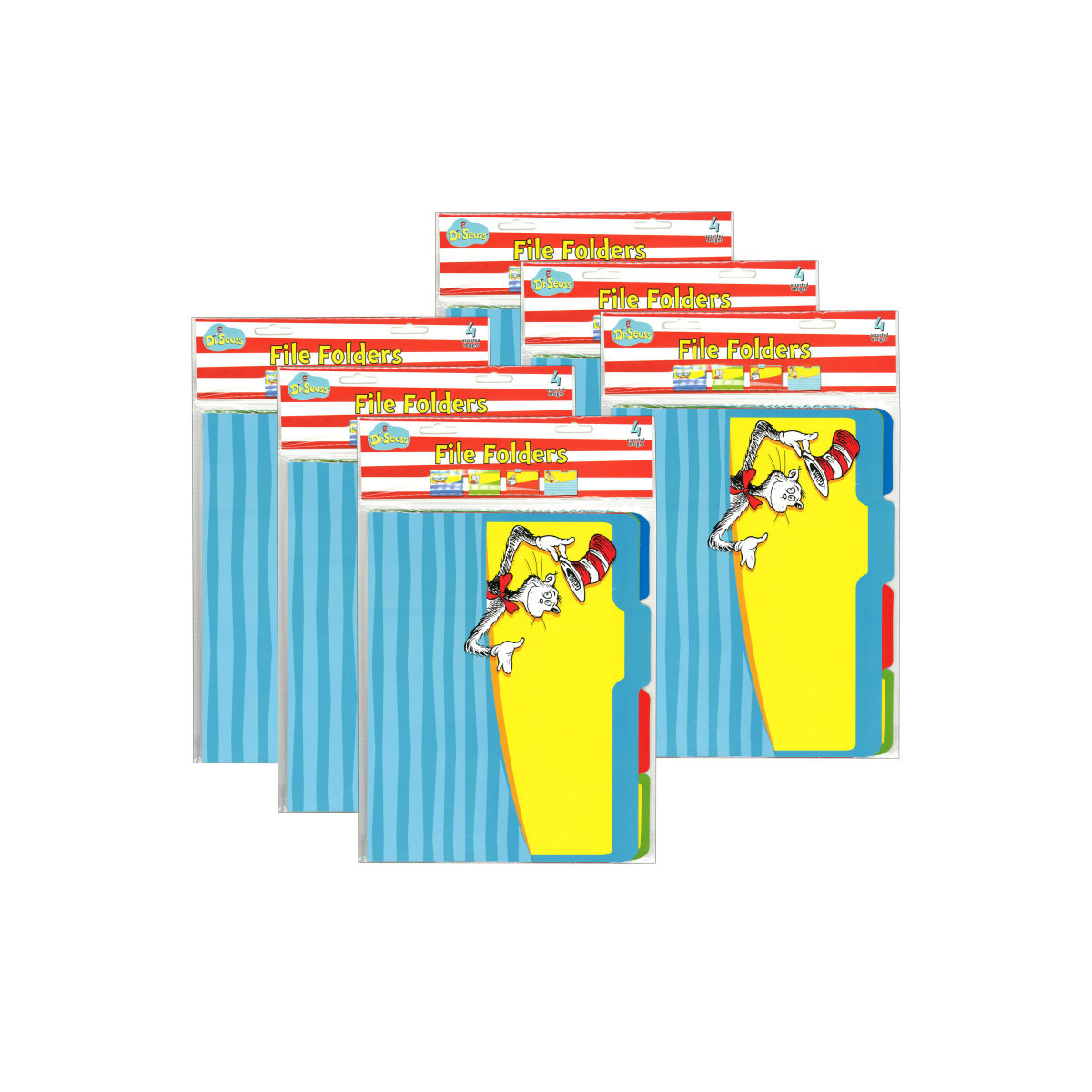 Dr. Seuss™ Classic File Folders offer unique and creative solutions for classroom organization. Each file folder measures approximately 9" x 11.5". Each pack includes 4 file folders (1 each of 4 different designs). Sold as 6 packs for 24 file folders total.
