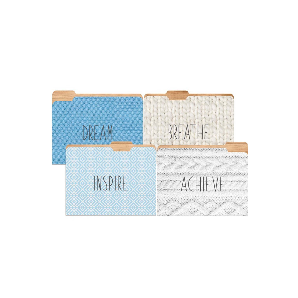 File Folders in complementing designs offer unique and creative solutions for classroom organization. Features four complementing patterns. Individual folder measures 9" x 11 1/2". Reusable. Each pack includes 4 folders.