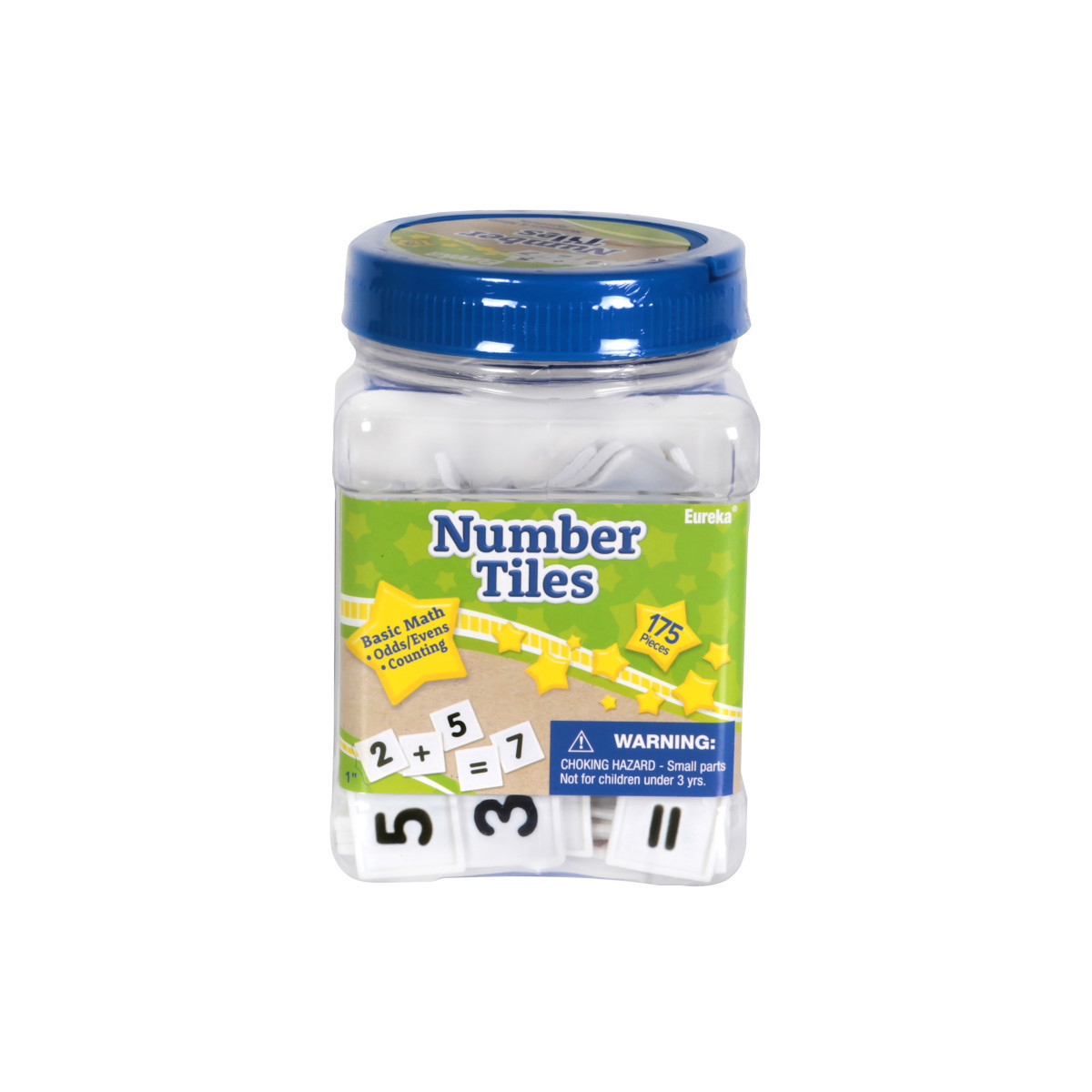 Manipulatives are great for teaching early childhood learning and a great tool in helping students recognize connections within each educational topic. Eureka Number Tiles Tub allows students to exercise problem solving skills through adding, subtracting, multiplying and dividing. Provides a fun and interactive approach to teaching mathematical problem solving and number recognition. Includes 175 number tiles, 0-9 plus mathematical symbols. Each measures 1" x 1". Plastic Tub measure 3 3/4" x 5 1/2" x 3 3/4".