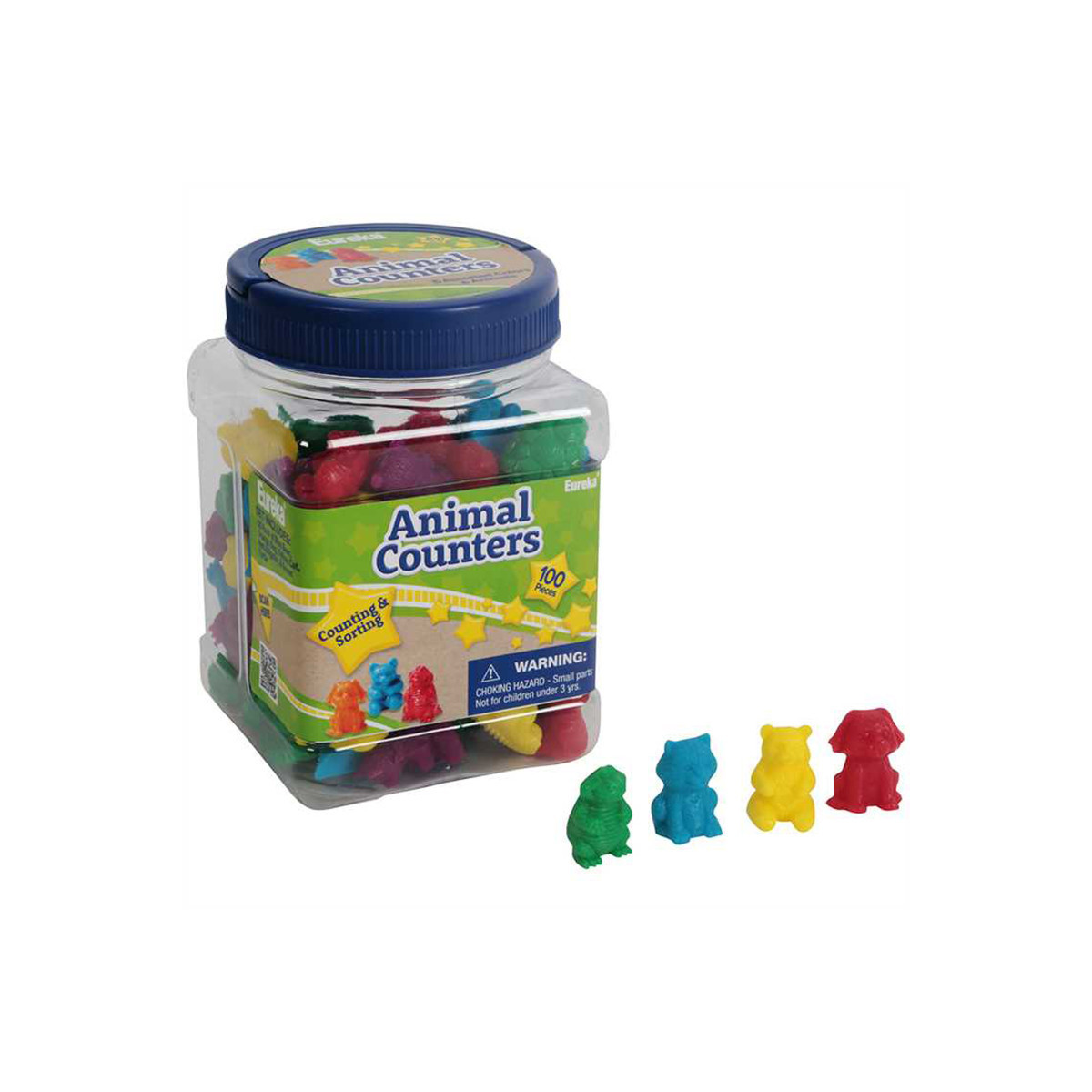 Eureka Manipulatives are great for teaching early childhood learning and a great tool in helping students recognize connections within each educational topic. 100 plastic animals provide lots of sorting fun! Each pack includes 20 each of bears, dogs, cats, turtles and alligators in five different colors in a plastic storage tub. Plastic tub measures 3.75" x 5.5" x 3.75". Not for children under 3 years of age.