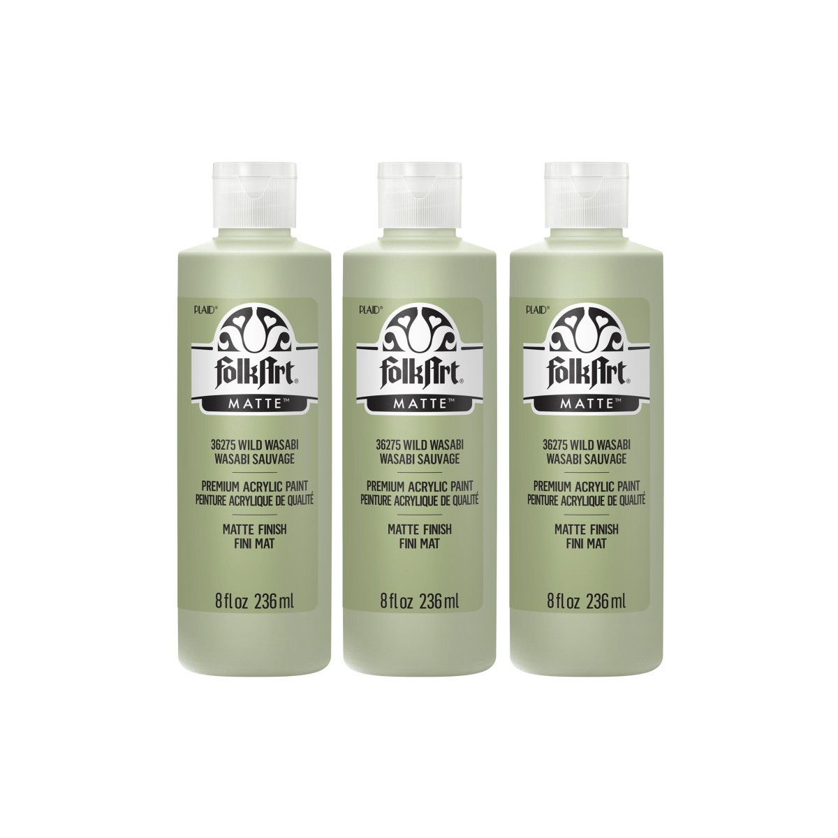 FolkArt Acrylic Paint Matte, 8oz., Wild Wasabi, Pack of 3