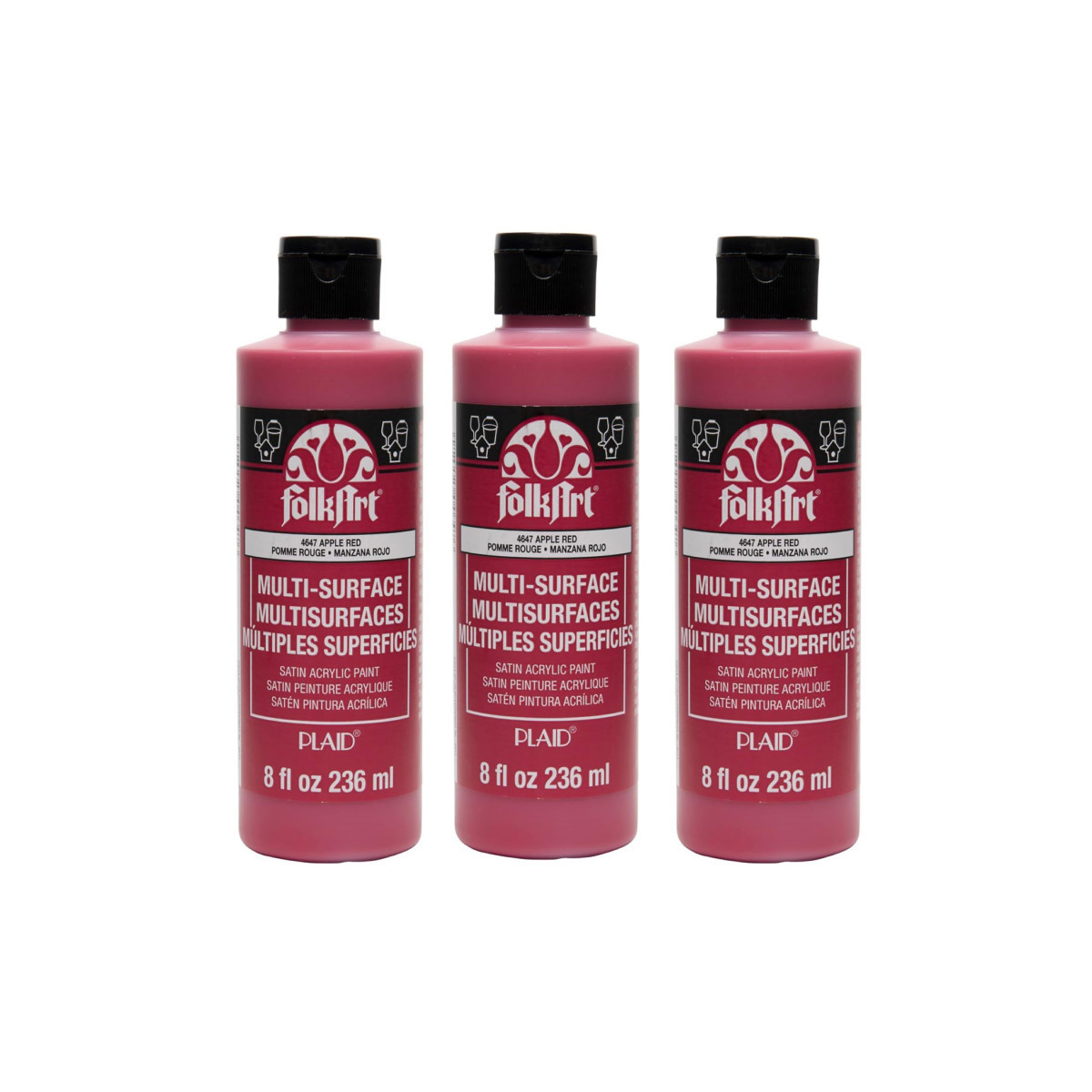 FolkArt Acrylic Paint Multi-Surface Satin, 8oz., Apple Red, Pack of 3