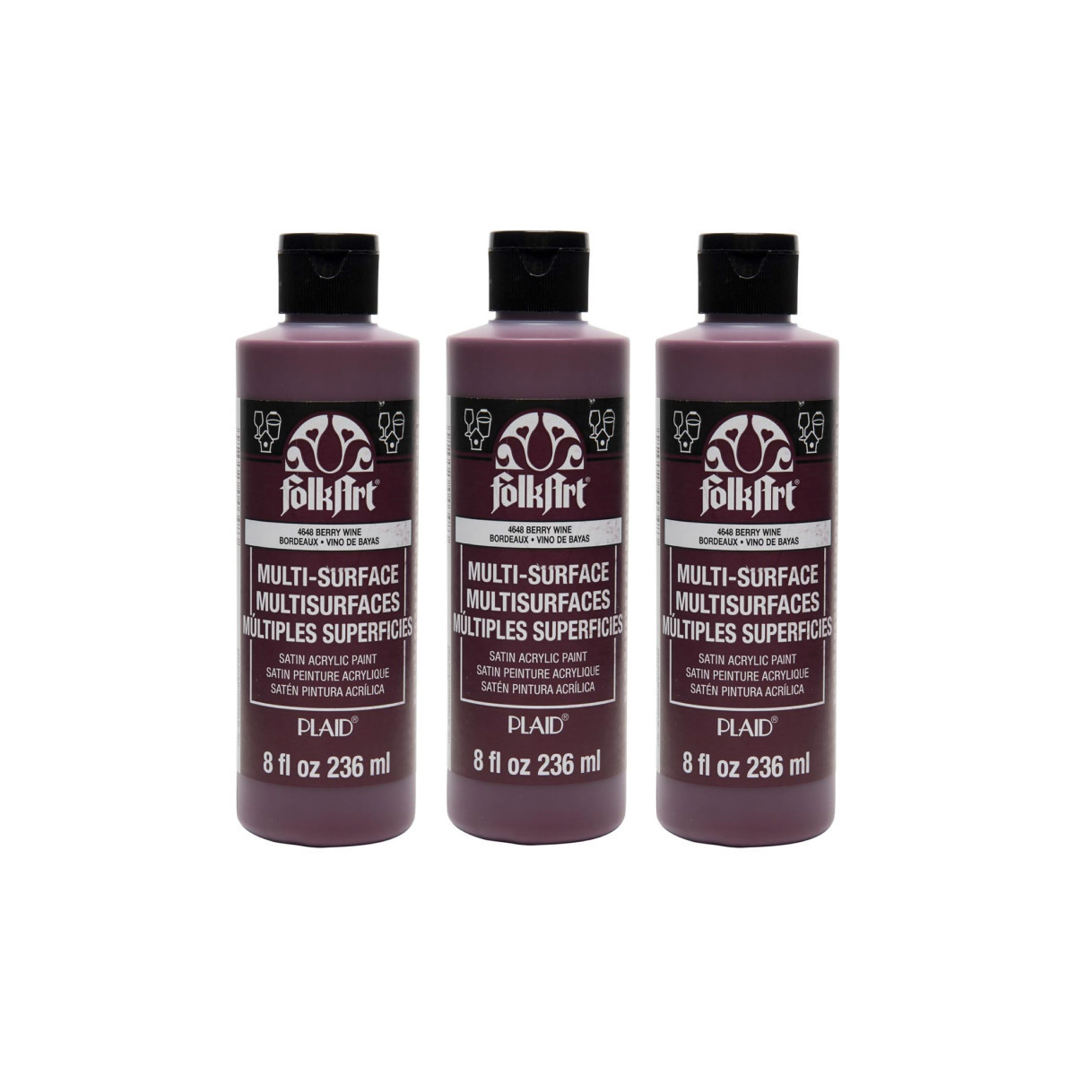 FolkArt Acrylic Paint Multi-Surface Satin, 8oz., Berry Wine, Pack of 3