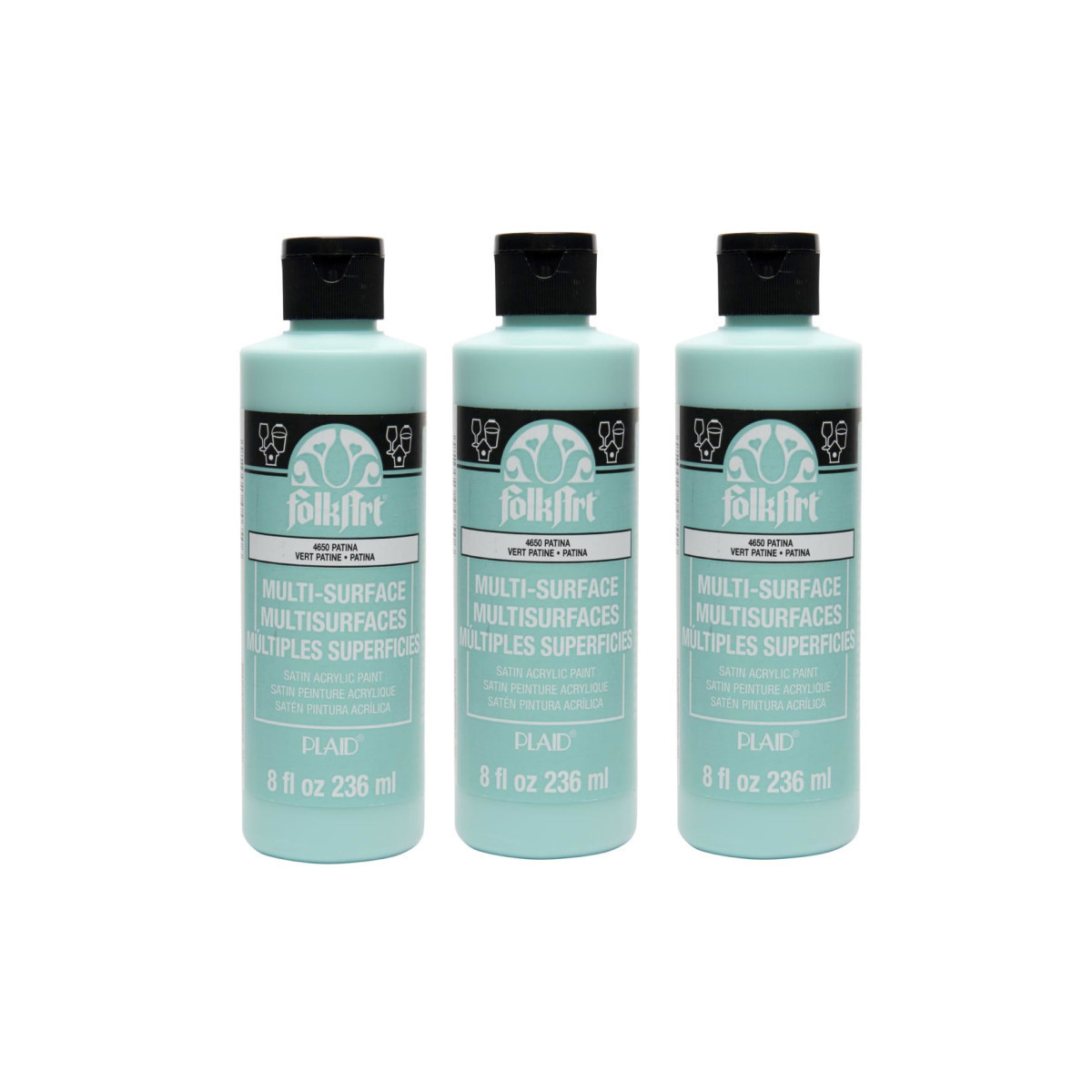FolkArt Multi-Surface Acrylic Paint provides a wide array of beautiful colors perfect for the crafter and decorative painter. Each of the colors in this line of superior quality acrylic paints has a creamy, smooth consistency with excellent coverage. Whether you are a novice or expert crafter, you will love the versatility of this acrylic paint as part of your arts and crafts supplies. Use this multi-surface paint on a variety of surfaces such as wood, terra cotta, canvas, glass, fabric, ceramics and more. With this multi-surface acrylic paint, you can do everything from intricate detail work to stenciling for a fresh look to all your DIY projects. This formula is also great for indoor and outdoor projects as well as top-shelf dishwasher safe when cured. Make FolkArt Multi-Surface Acrylic Paint a must-have addition to your art supplies. Sold as a pack of 3 bottles.