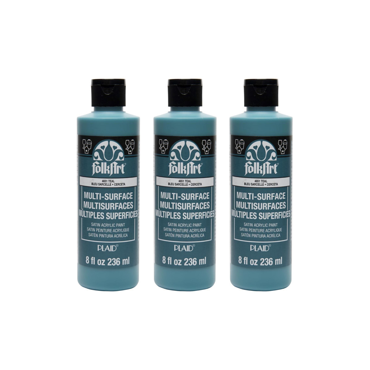FolkArt Multi-Surface Acrylic Paint provides a wide array of beautiful colors perfect for the crafter and decorative painter. Each of the colors in this line of superior quality acrylic paints has a creamy, smooth consistency with excellent coverage. Whether you are a novice or expert crafter, you will love the versatility of this acrylic paint as part of your arts and crafts supplies. Use this multi-surface paint on a variety of surfaces such as wood, terra cotta, canvas, glass, fabric, ceramics and more. With this multi-surface acrylic paint, you can do everything from intricate detail work to stenciling for a fresh look to all your DIY projects. This formula is also great for indoor and outdoor projects as well as top-shelf dishwasher safe when cured. Make FolkArt Multi-Surface Acrylic Paint a must-have addition to your art supplies. Sold as a pack of 3 bottles.