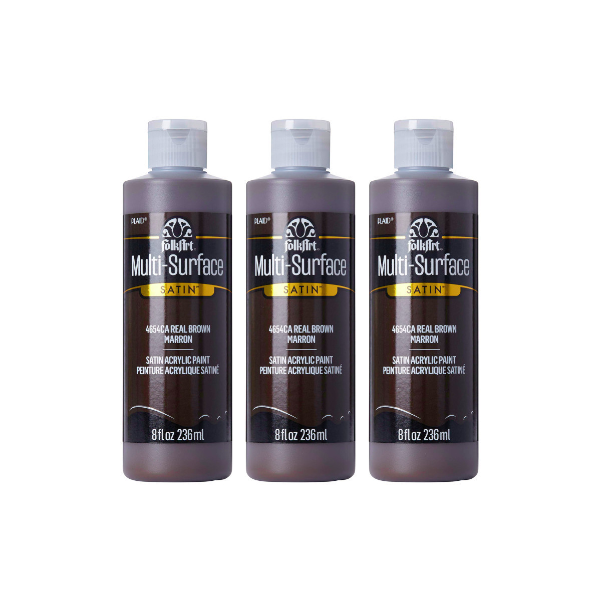 FolkArt Acrylic Paint Multi-Surface Satin, 8oz., Real Brown, Pack of 3