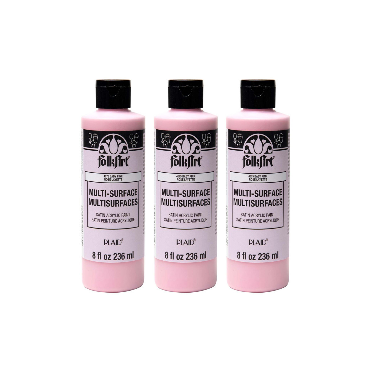 FolkArt Acrylic Paint Multi-Surface Satin, 8oz., Baby Pink, Pack of 3