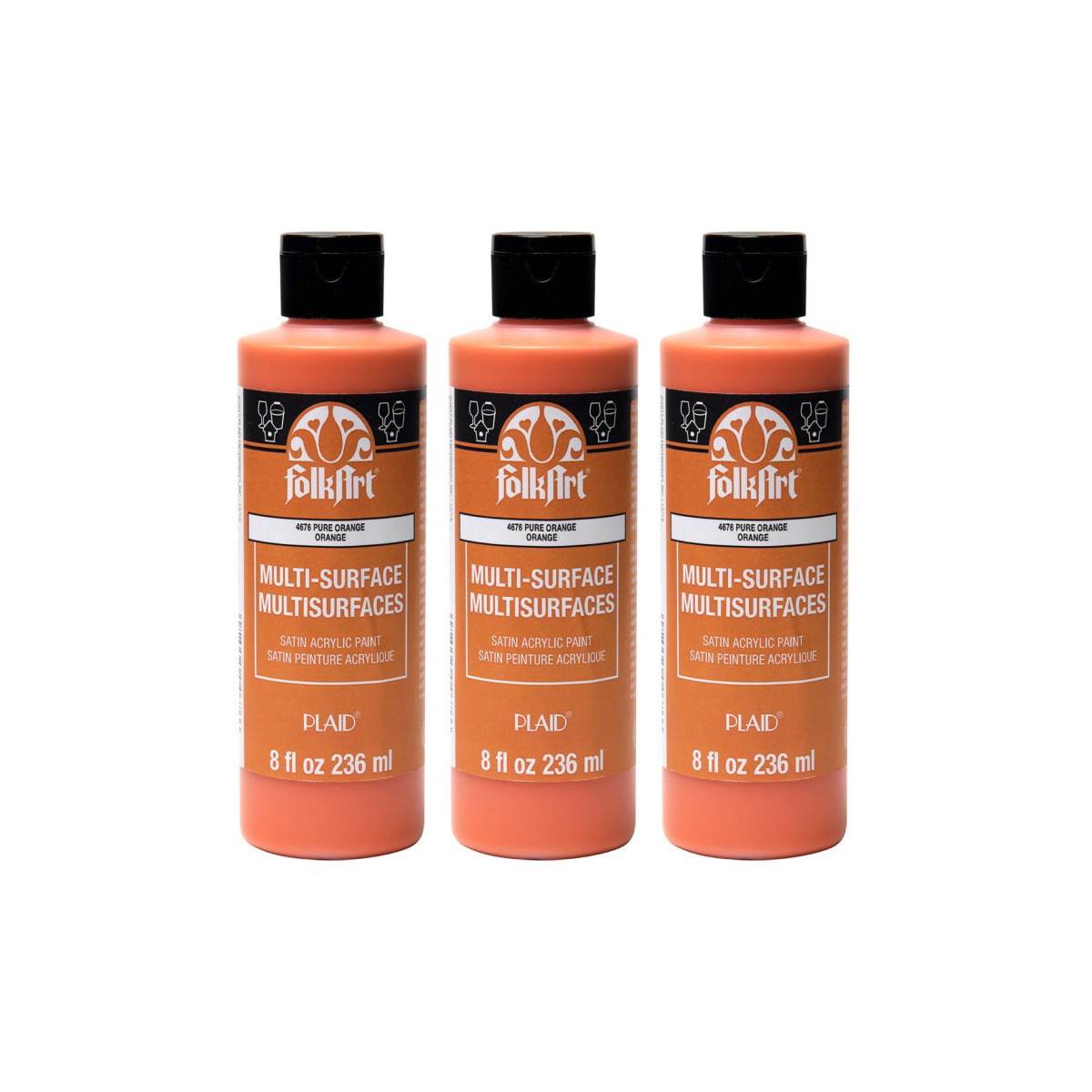 FolkArt Multi-Surface Acrylic Paint provides a wide array of beautiful colors perfect for the crafter and decorative painter. Each of the colors in this line of superior quality acrylic paints has a creamy, smooth consistency with excellent coverage. Whether you are a novice or expert crafter, you will love the versatility of this acrylic paint as part of your arts and crafts supplies. Use this multi-surface paint on a variety of surfaces such as wood, terra cotta, canvas, glass, fabric, ceramics and more. With this multi-surface acrylic paint, you can do everything from intricate detail work to stenciling for a fresh look to all your DIY projects. This formula is also great for indoor and outdoor projects as well as top-shelf dishwasher safe when cured. Make FolkArt Multi-Surface Acrylic Paint a must-have addition to your art supplies. Sold as a pack of 3 bottles.